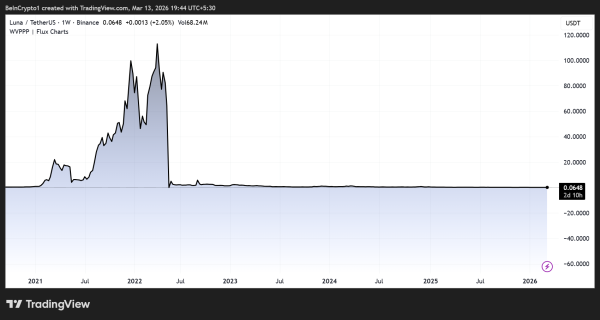 $LUNA до и после краха 2022 года»> Динамика цены $LUNA до и после краха 2022 года. Источник: TradingView