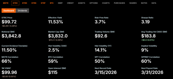 Доходность STRC от Strategy на 13 марта 2026 года. Источник: Strategy