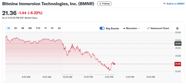Изменение стоимости акций BMNR Данные finance.yahoo
