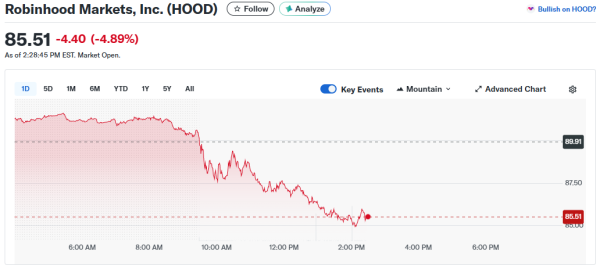 Эти покупки были совершены в период падения ценных бумаг криптовалютных компаний: акции Robinhood и Circle снизились почти на 10% и 8%, а BitMine и Bullish — более чем на 9% и 4%.
