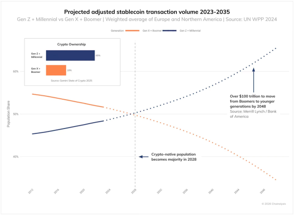 Миллениалы и зумеры как драйверы массового принятия стейблкоинов. Источник: Chainalysis.