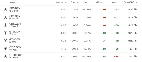 Доходность облигаций американского правительства на разные сроки