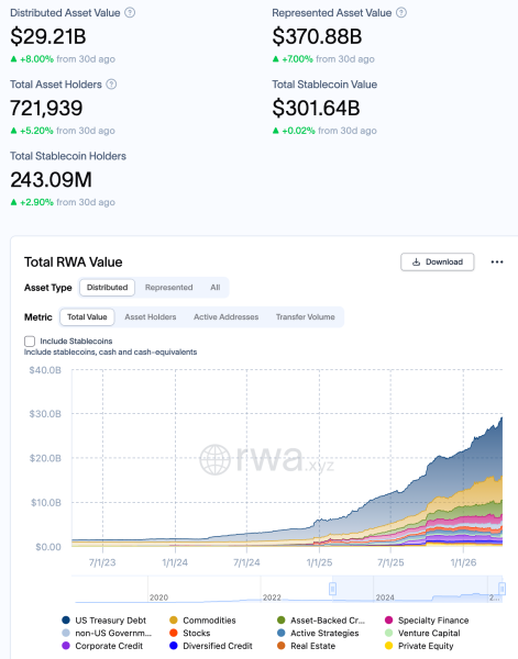Объем сегмента токенизированных активов приближается к $30 млрд. Источник: RWA.