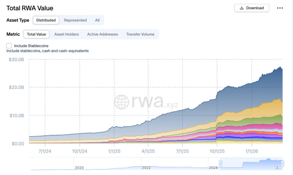 Рынок таких активов быстро растёт. За последний год он утроился и достиг примерно $26 млрд, по данным rwa.xyz.