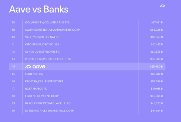 Объем чистых депозитов достиг рекордных $75 млрд. За пять лет с момента запуска протокол обработал платежи на $3,3 трлн и выдал кредиты на сумму свыше $1 трлн. Все это поставило Aave в ряд с 50 крупнейшими банками в США, подчеркнул Кулечов.