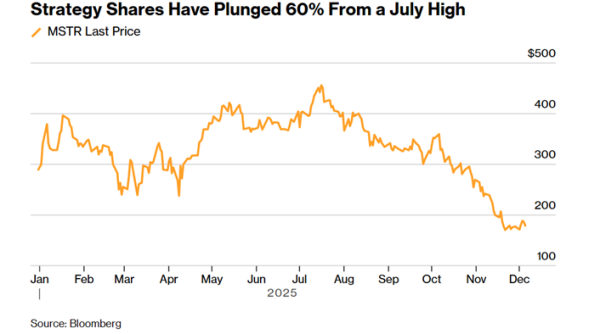 Динамика акций Strategy. Источник: Bloomberg.