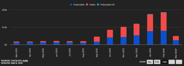 Столь амбициозные цифры отражают стремительное развитие сектора. В феврале совокупный объем торгов на ведущих платформах предсказаний достиг $18,3 млрд, хотя еще в августе 2025 года показатель не превышал $2 млрд.