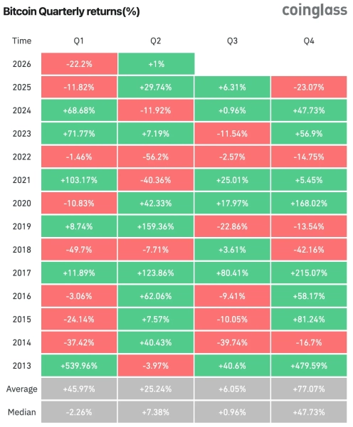 В первом квартале 2026 года цена первой криптовалюты упала на 22,2%. Это худший старт для актива за последние восемь лет.